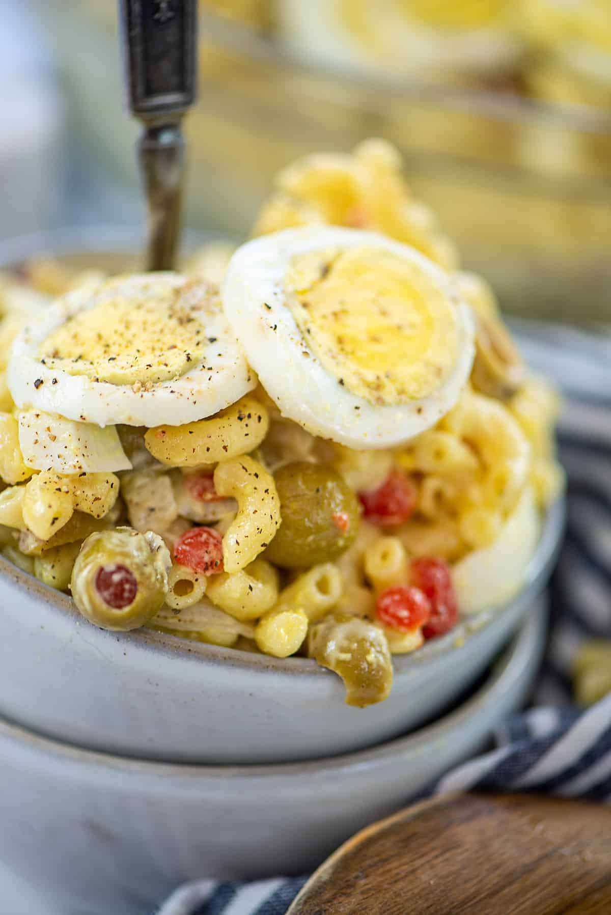 This easy macaroni salad is a summer staple around here. My mom makes it for holidays too and everyone raves about it.