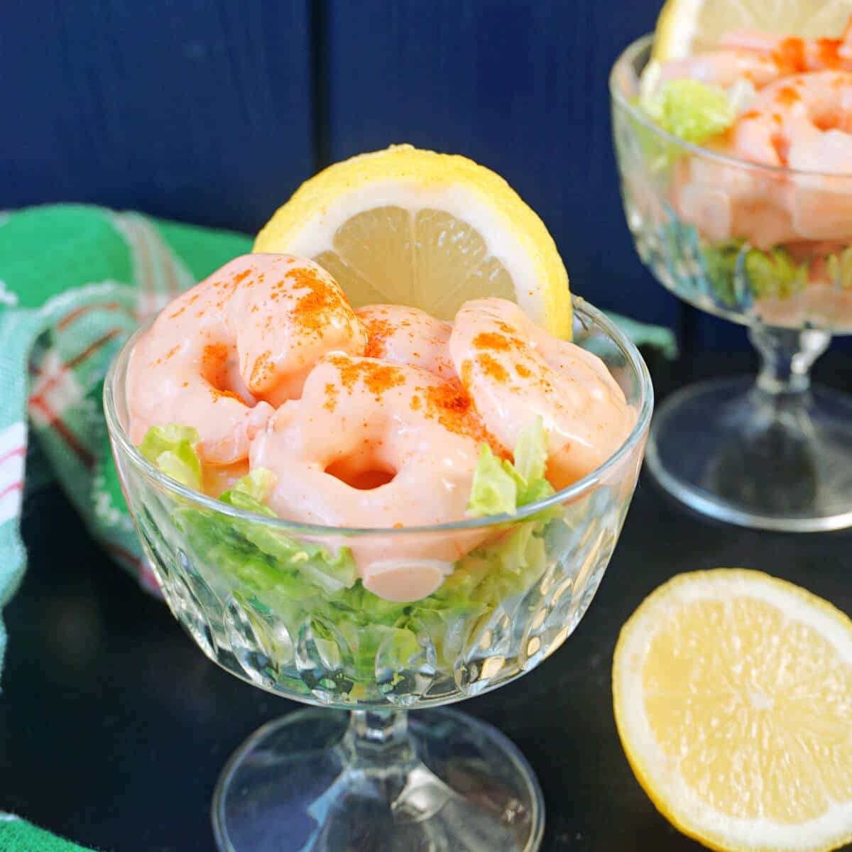Classic Prawn Cocktail with a crunchy gem lettuce base and cooked king prawns smothered in a prawn cocktail sauce made with mayo, ketchup and a hint of tabasco, a delicious starter for the festive season, but also any other celebration throughout the year. Quick, super simple, but highly impressive.