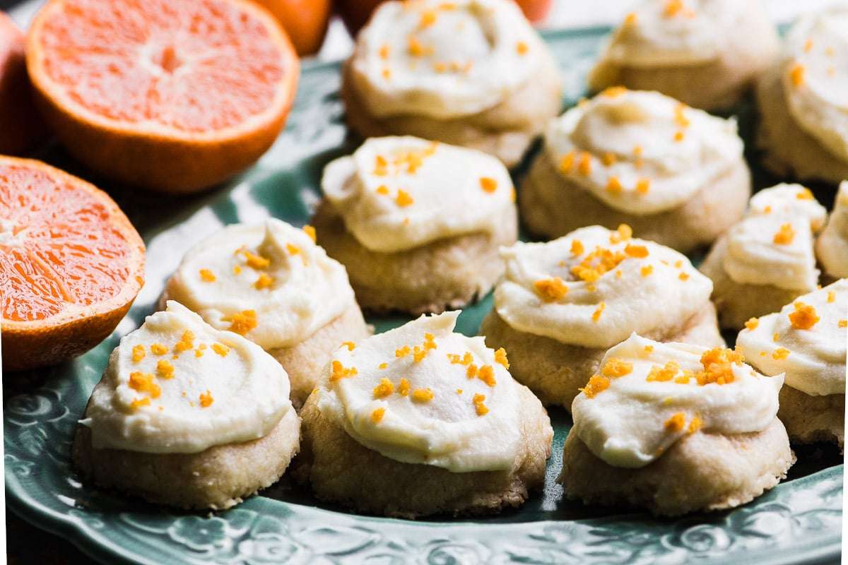 - To make the frosting, blend the soft butter with the sugar, adding enough juice to get it to a spreadable consistency. If it becomes too thin, add a little more sugar. Stir until it is creamy, with no sugar lumps. Frost each cookie and garnish with a sprinkle of zest.