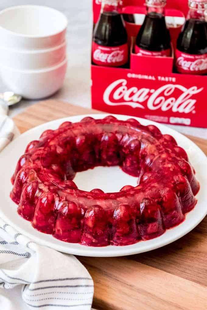 Coca-Cola Jello Salad is a jiggly, fruity treat studded with chopped tart cherries and crushed pineapple, with a bit of kick from the Coca-Cola. It's especially fun made in a jello mold!