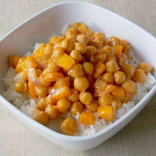 Coconut curry garbanzo beans is a flavorful healthy recipe. This chickpea dish is vegetarian, vegan, gluten-free, and tastes amazing served over rice!
