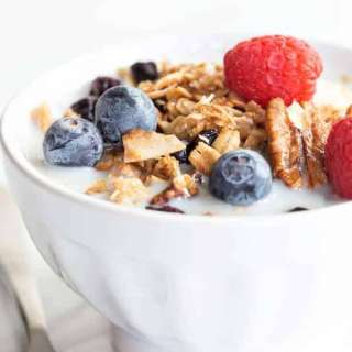 Coconut Pecan Granola is an easy to make snack that's perfect with some milk for breakfast, on yogurt, or just eat it by the handful!