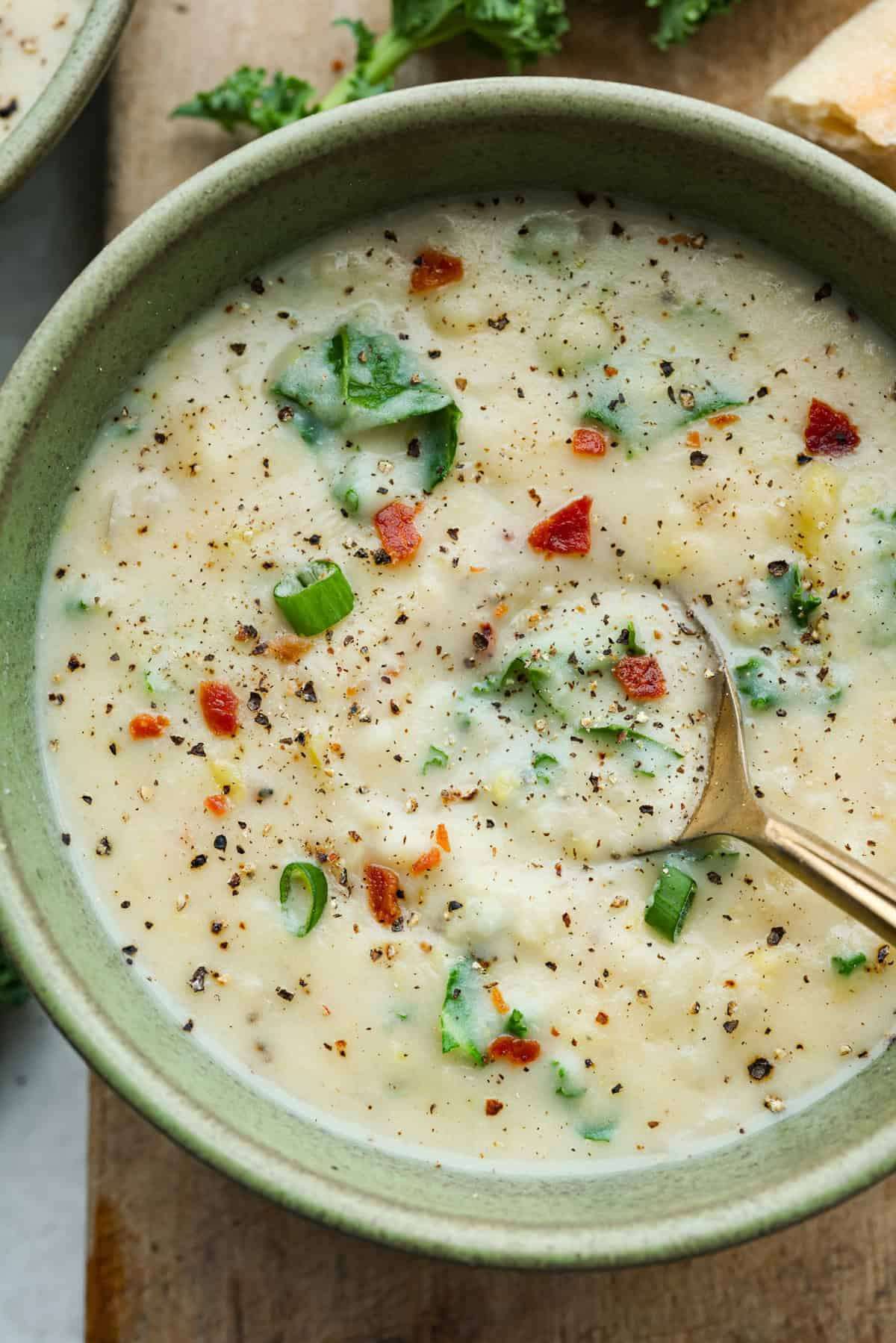 This colcannon soup is a creamy, luscious soup inspired by the traditional Irish dish that is made with potatoes, cabbage, kale, butter, and cream.
