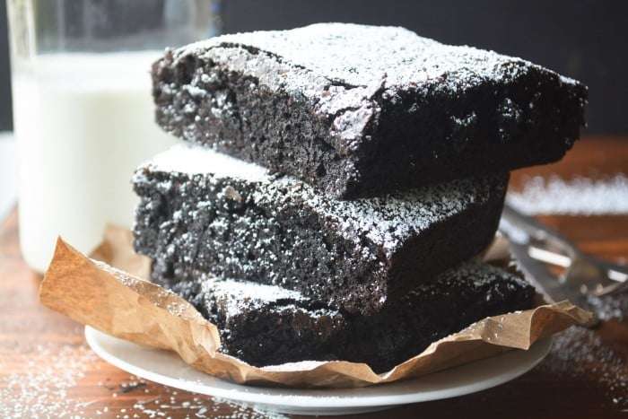 - Let cool slightly and dust with powdered sugar. Cut into four large squares.