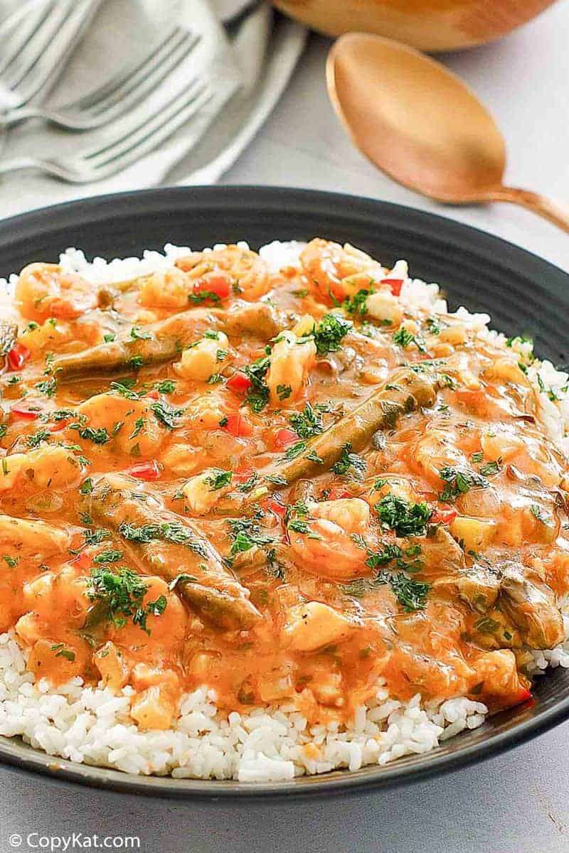 - Turn heat down to simmer and add all other ingredients except okra and oysters.