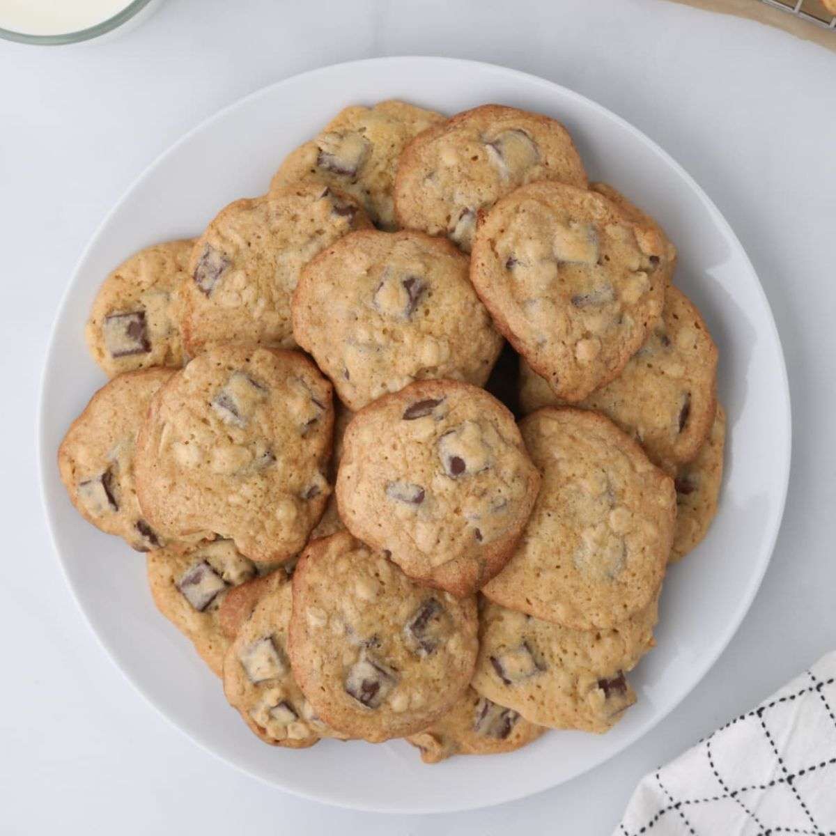 A delicious copycat version of the Chick-Fil-A cookie recipe made with both semi-sweet dark chunks and milk chocolate chunks. This easy cookie recipe bakes up into chocolate chunk cookies the family is sure to love.