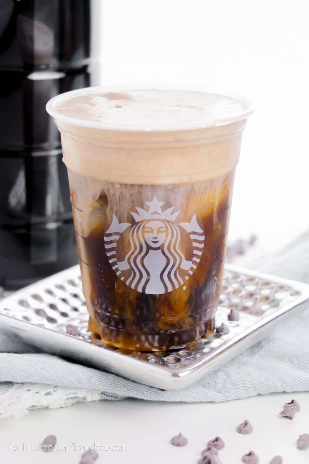 Skip the drive-thru and make your own Copycat Starbucks Chocolate Cold Brew at home! You're going to love this blend of strong coffee and decadent mocha foam!