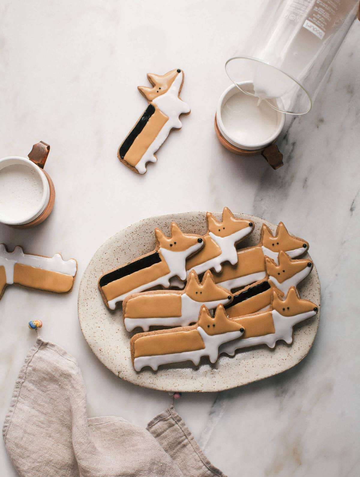 These corgi cookies are spiced chai sugar cookies, rolled out and stamped to look like your favorite cookie. Decorated with royal icing, these are a delicious corgi-inspired treat.