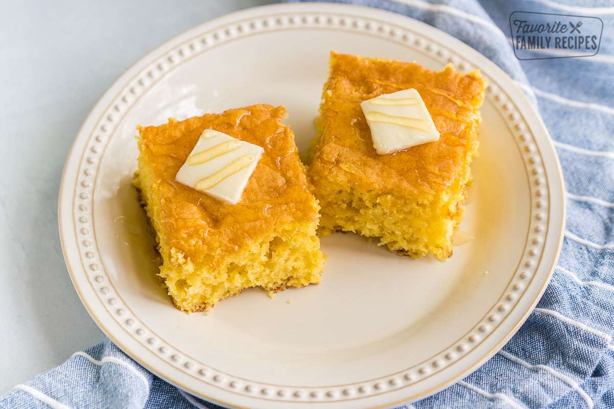 This Cornbread with Cake Mix recipe is a perfect cross between a cake and cornbread. The texture is fluffy and smooth, but has that yummy cornbread taste!