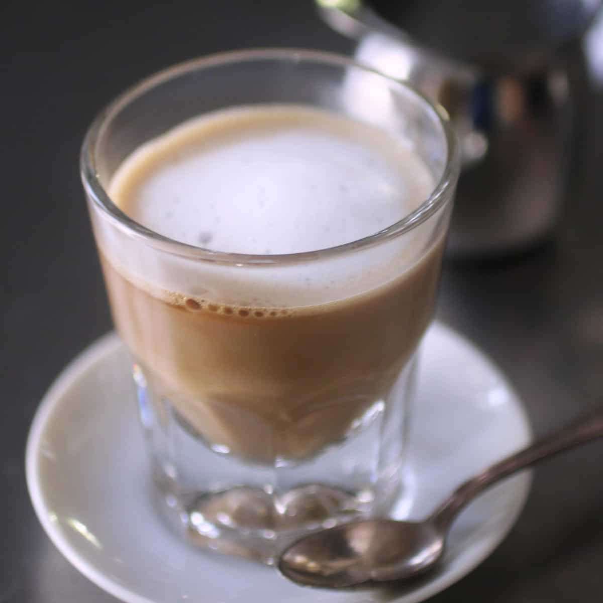 Cortado is a Spanish specialty that consists of an espresso coffee mixed with hot milk. It is also called "cortado con leche".