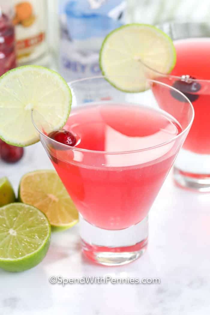 A Cosmopolitan Drink is a classy cocktail with some sweetness and holiday color to it!