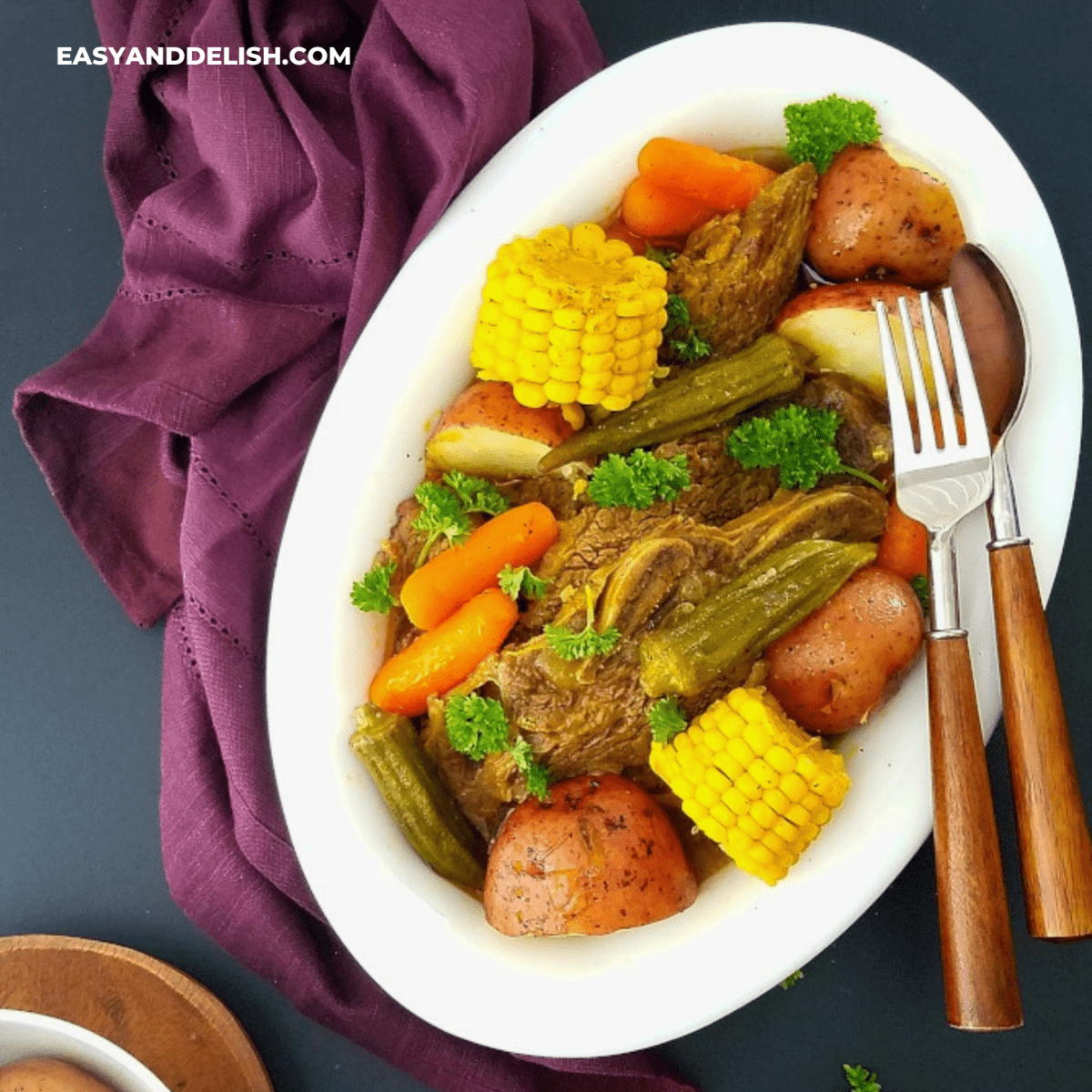 Esta Costela naPanela de Pressão é um ensopado de costela na pressão feito com milho, batata, quiabo e cenoura. Fica macia, gostosa e pode ser servida compirão e arroz.