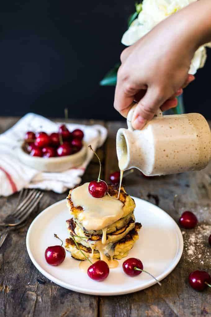 These golden, raisin-studded fritters are the perfect cottage cheese pancakes recipe. They’re a decadent but light breakfast, a special treat for mornings when you don’t have anywhere else to be. The batter is airy, and the trick is getting these patties to form without overloading them with flour. I made this version gluten-free and lactose-free, but you can go all the way and use regular ricotta or cottage cheese, and regular flour. They’ll be even lighter. Leave the cheese to drain overnight in a colander lined with cheesecloth in the fridge, or give it at least a couple of hours and a good squeeze through a cheesecloth if you’re short on time.