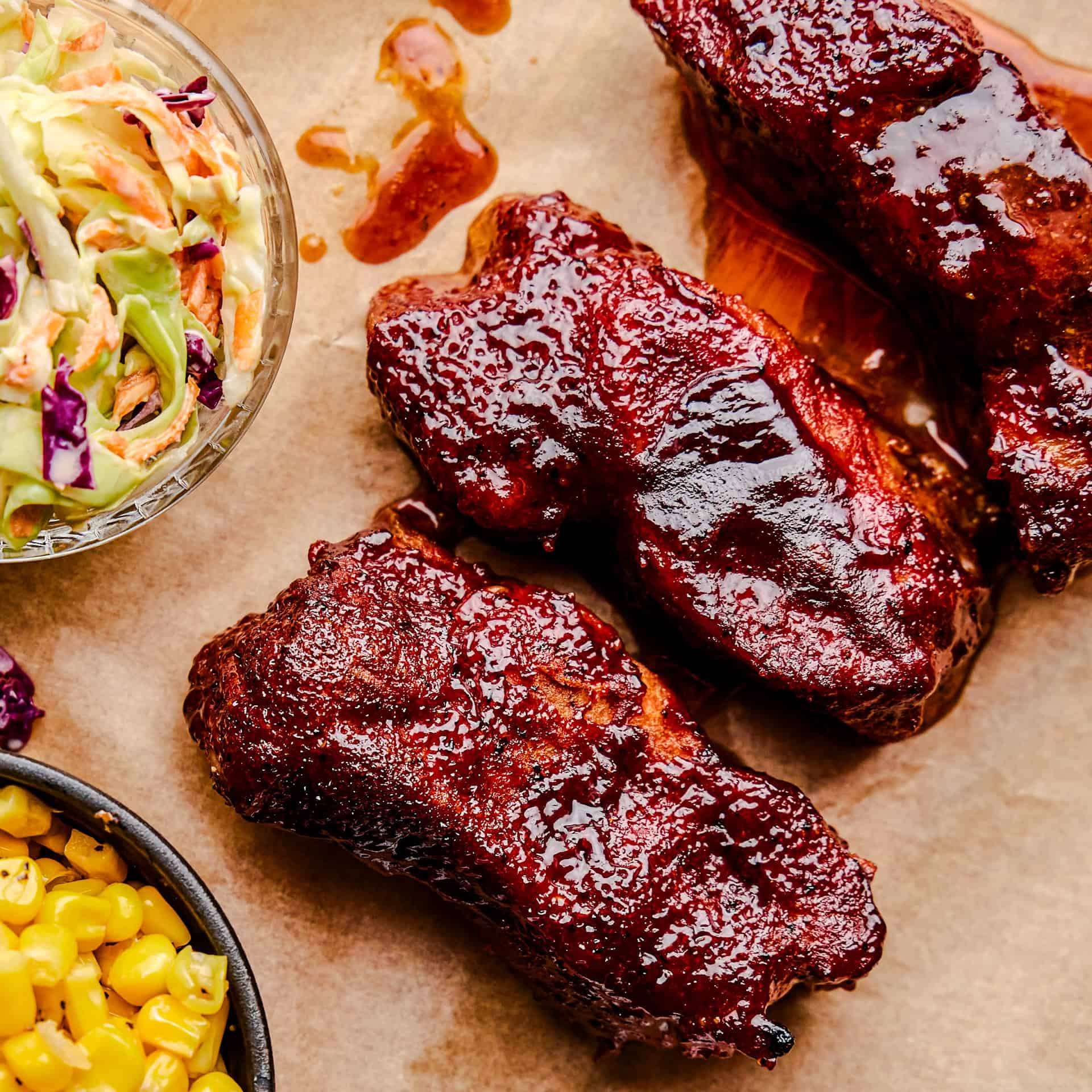 Juicy country style ribs that are fall-apart tender, easy to make, and coated with deliciously sticky barbecue sauce.