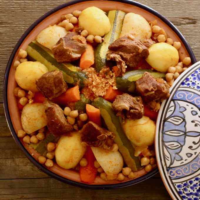 Le couscous tunisien est une des innombrables variantes de ce délicieux mets versatile d'Afrique du Nord composé de semoule de couscous servie avec un bouillon à base de légumes et de viande.