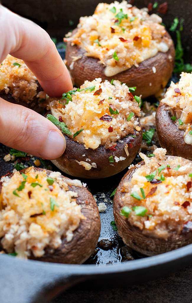 - Depending on preference, you can add the panko to the stuffing mixture along with the crab and cheese or save it as a crispy topping. I love them both ways, choose your favorite!