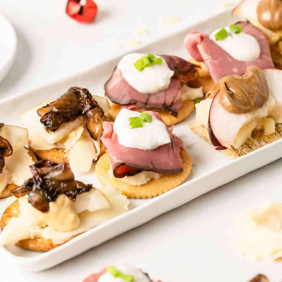 Fresh, easy, and totally customizable, Cracker Canapes are the perfect bite-sized appetizers for all your holiday parties!