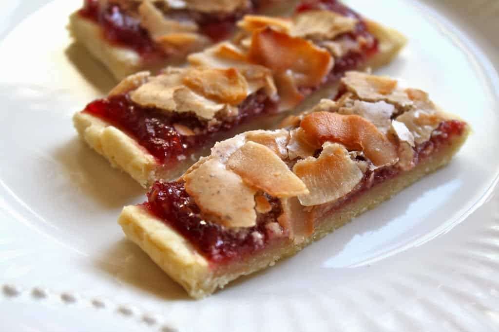 - Spread carefully over the cranberry-raspberry filling. Sprinkle with coconut.