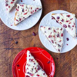 - Once the cookie cake has completely cooled, spread the frosting over the top. Sprinkle with cranberries and then drizzle the remaining white chocolate on top. Cut into pieces with a sharp knife. Store in the refrigerator until serving.