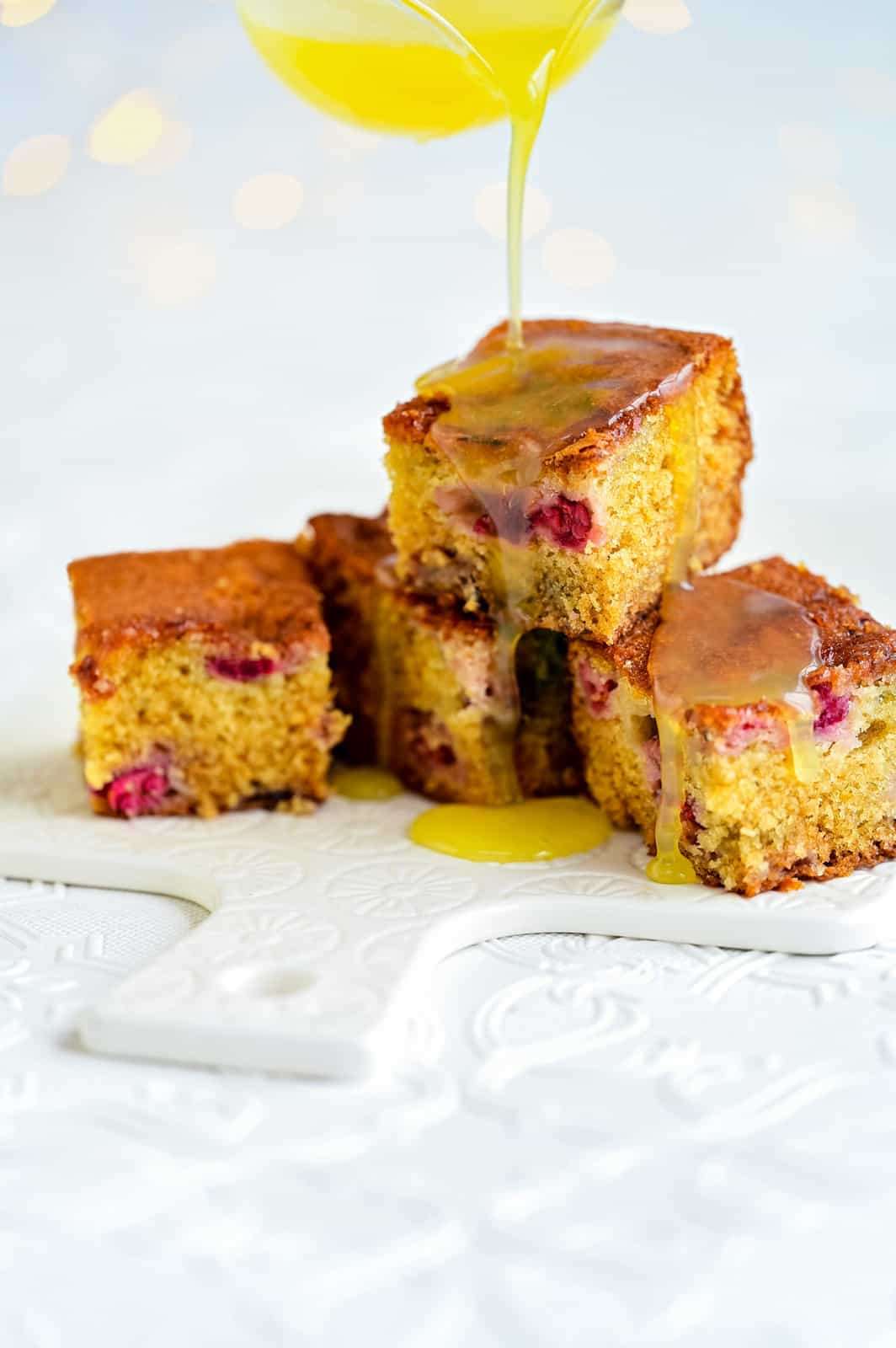 - Lift the cake onto a wire rack to cool completely and slice. I cut my cranberry cake into 24 fairly small squares – you can cut into bigger and more generous servings if you like!
