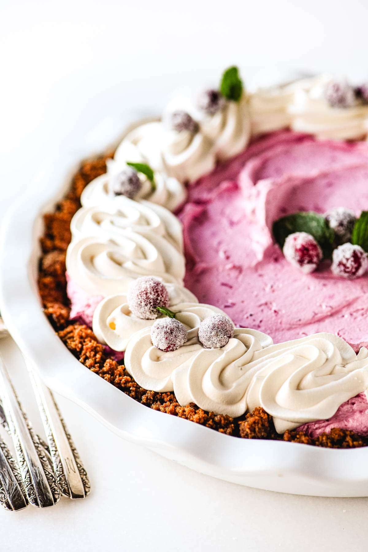 Cranberry Mousse Pie ~ it's light and fluffy, the flavor is tart and tangy, and the gingersnap crust gives it a pop of holiday spice.