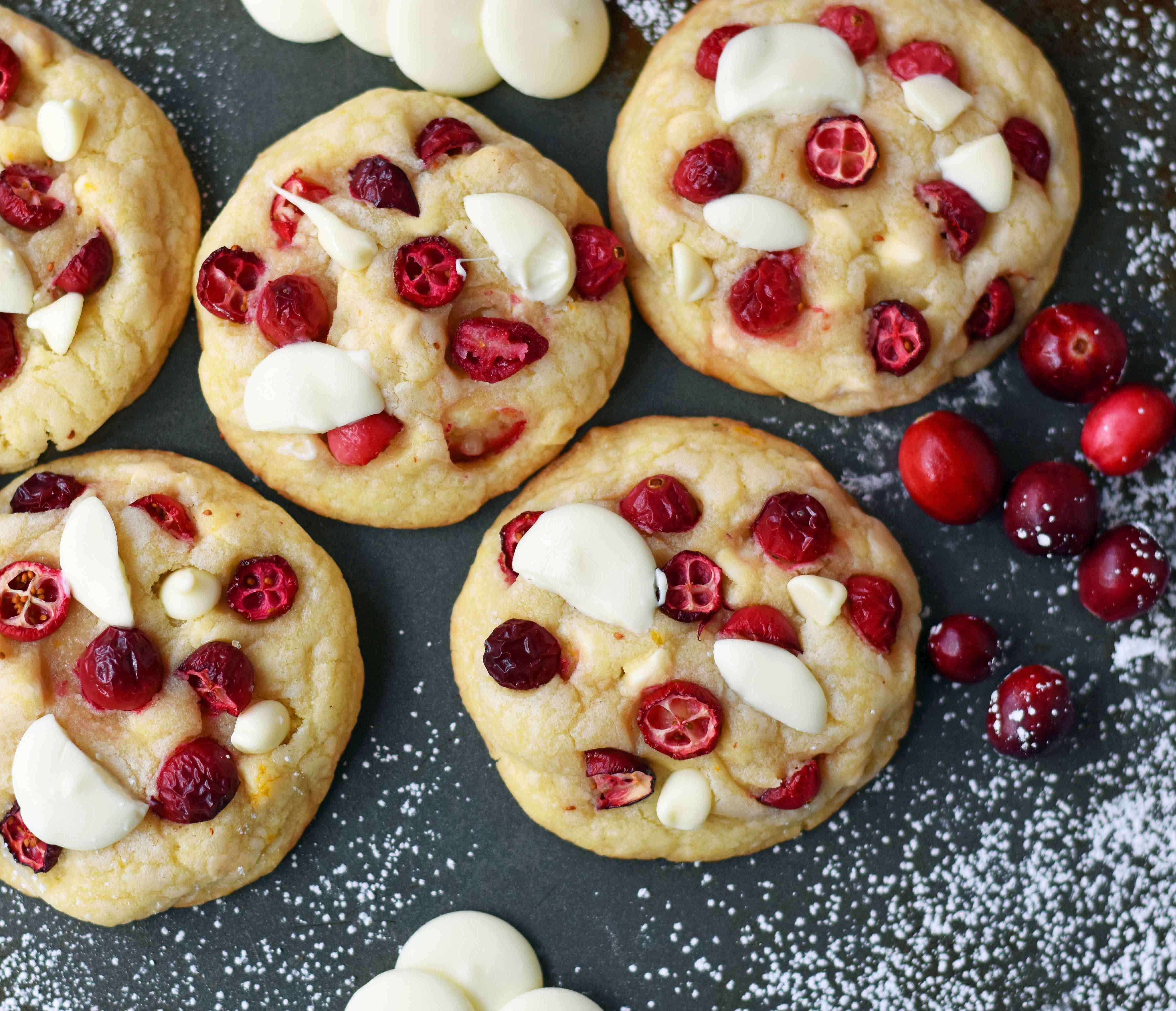 Cranberry Orange White Chocolate Cookies. Citrus orange dough with fresh or dried cranberries, orange zest, and white chocolate chunks. A popular Christmas cookie!