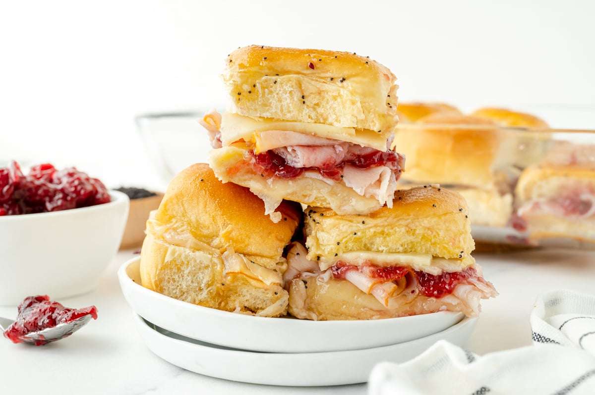 These Cranberry Turkey Sliders channel all of the fall vibes with warm bread, melty cheese, and bright cranberry sauce!