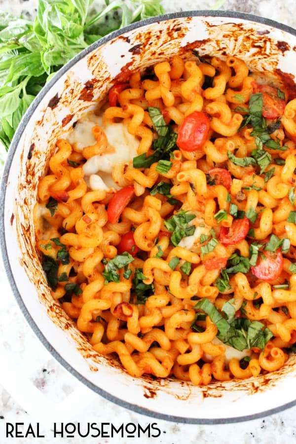 CREAMY CAPRESE PASTA is made with fresh cherry tomatoes, basil & fresh mozzarella covered in a creamy sauce for a dinner you'll crave!