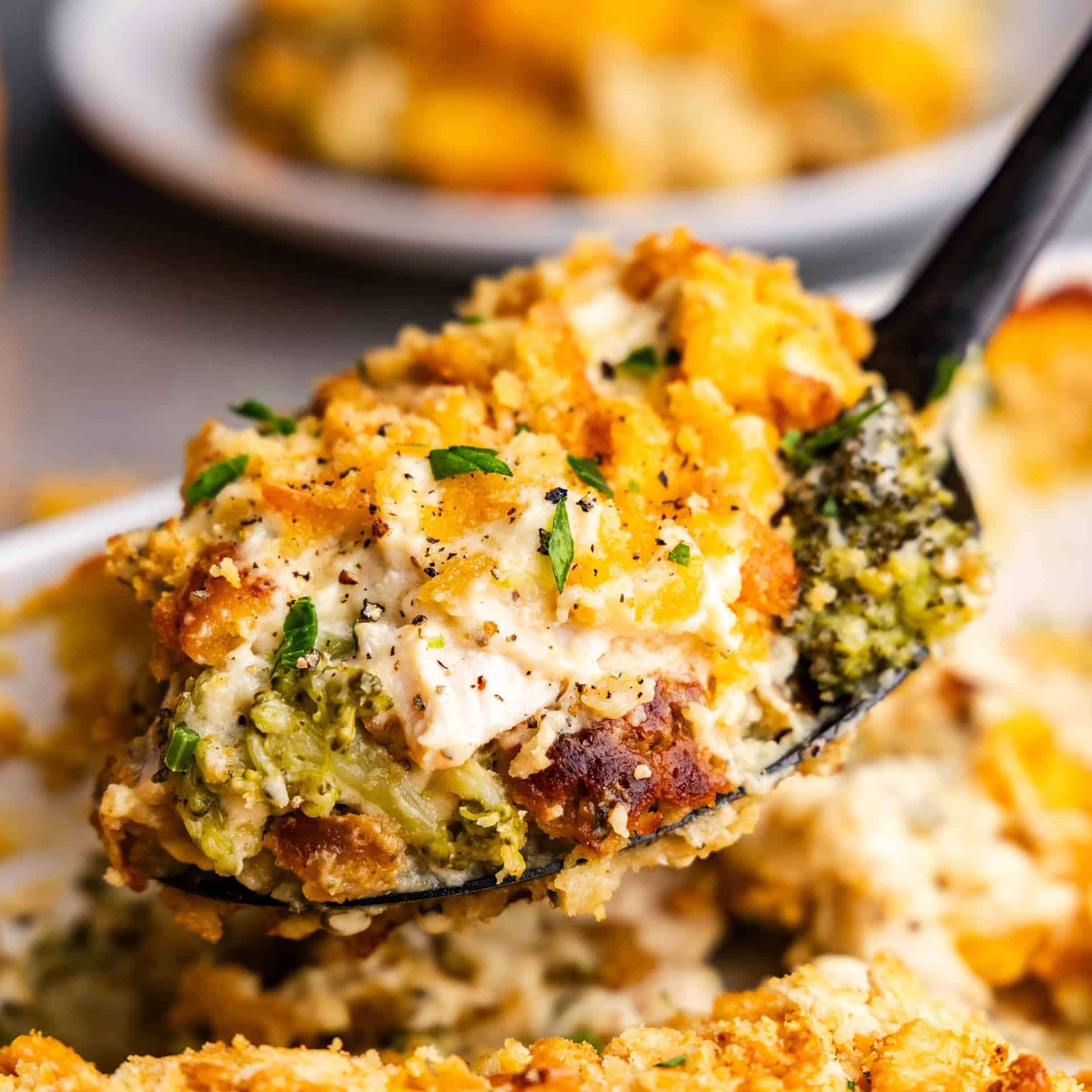 This easy Chicken Divan casserole features a homemade creamy sauce and a buttery Ritz cracker topping for the perfect weeknight meal!
