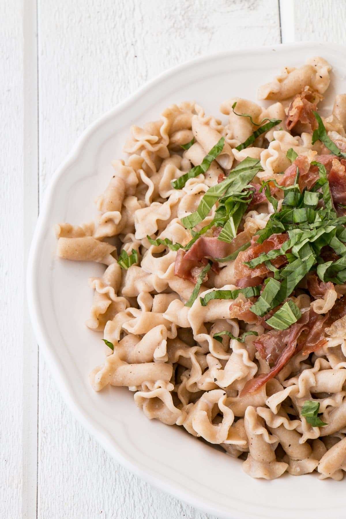 A super easy kid-loving pasta dish with a touch of cream and lots of basil for a fresh flavour.