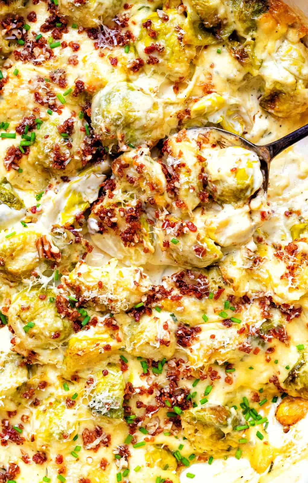 These Creamy Keto Brussels Sprouts With Bacon are a deliciously indulgent side dish! Perfect for your festive celebrations, easy to make and low carb.