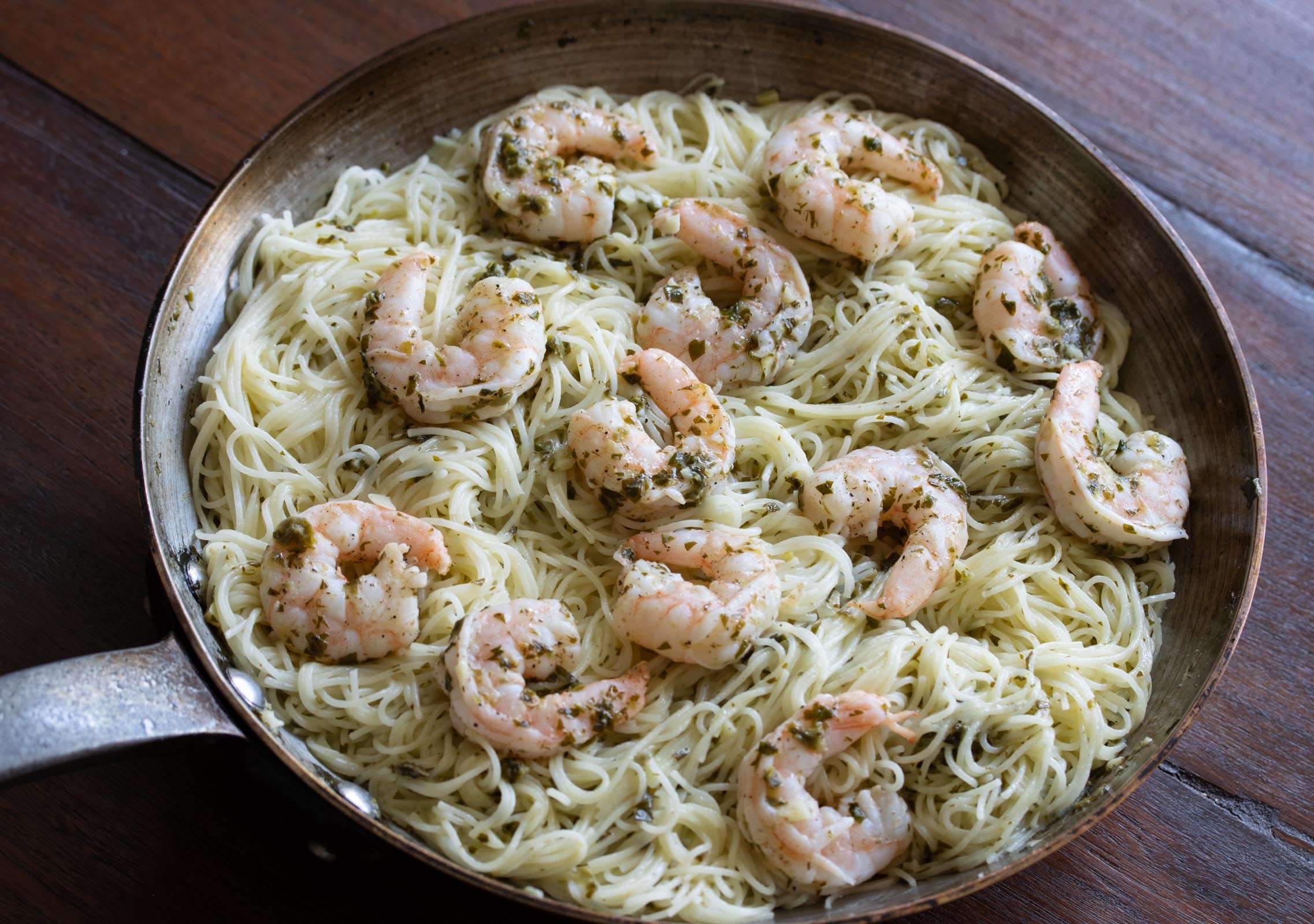 Creamy lemon sauce with shrimp and angel hair pasta. Super easy and so rich in flavor.