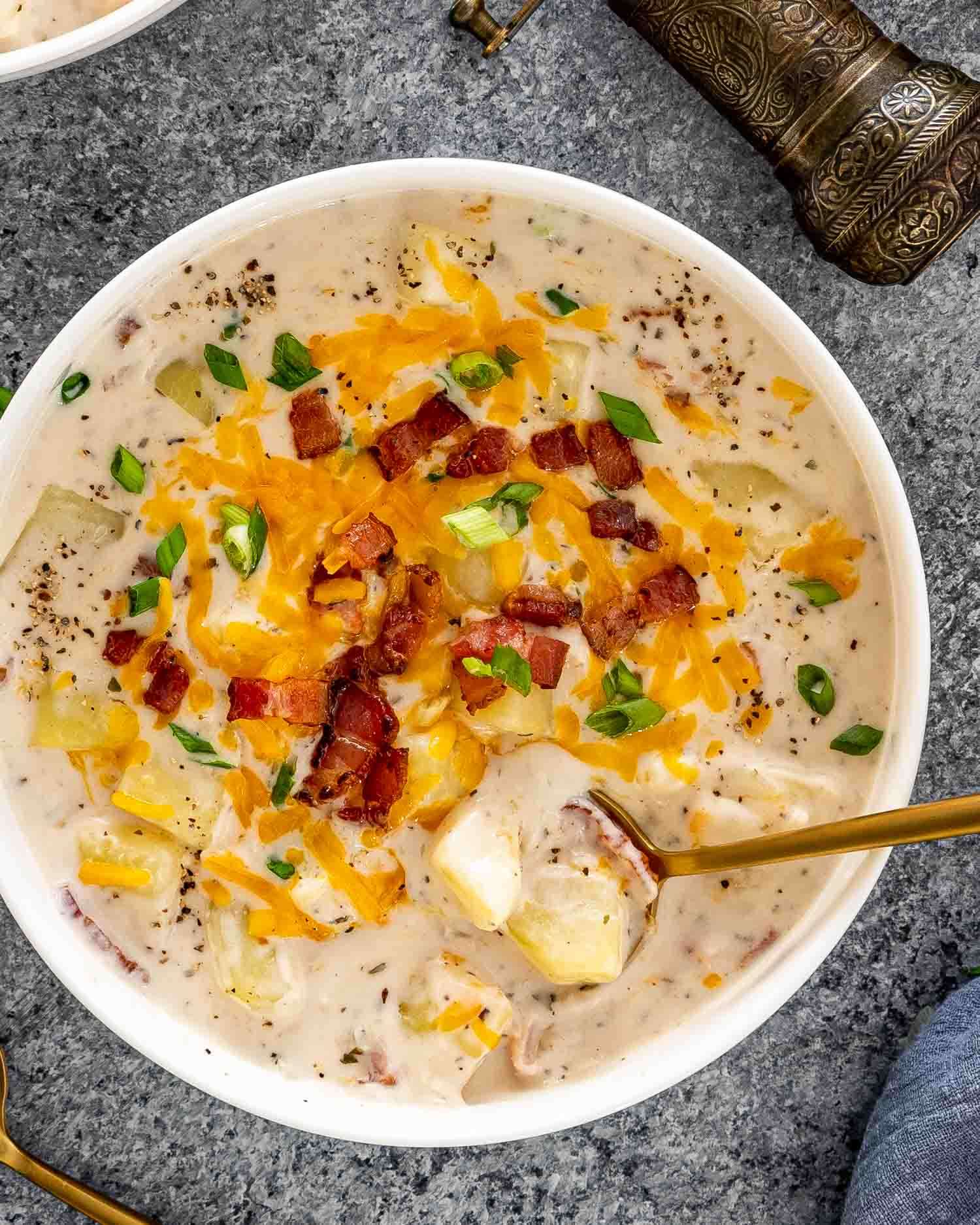 This Creamy Potato Soup is smooth, creamy, and delicious. It can only be described as serious comfort food in a bowl that's quick and easy to make. A simple recipe perfect for a cold day.
