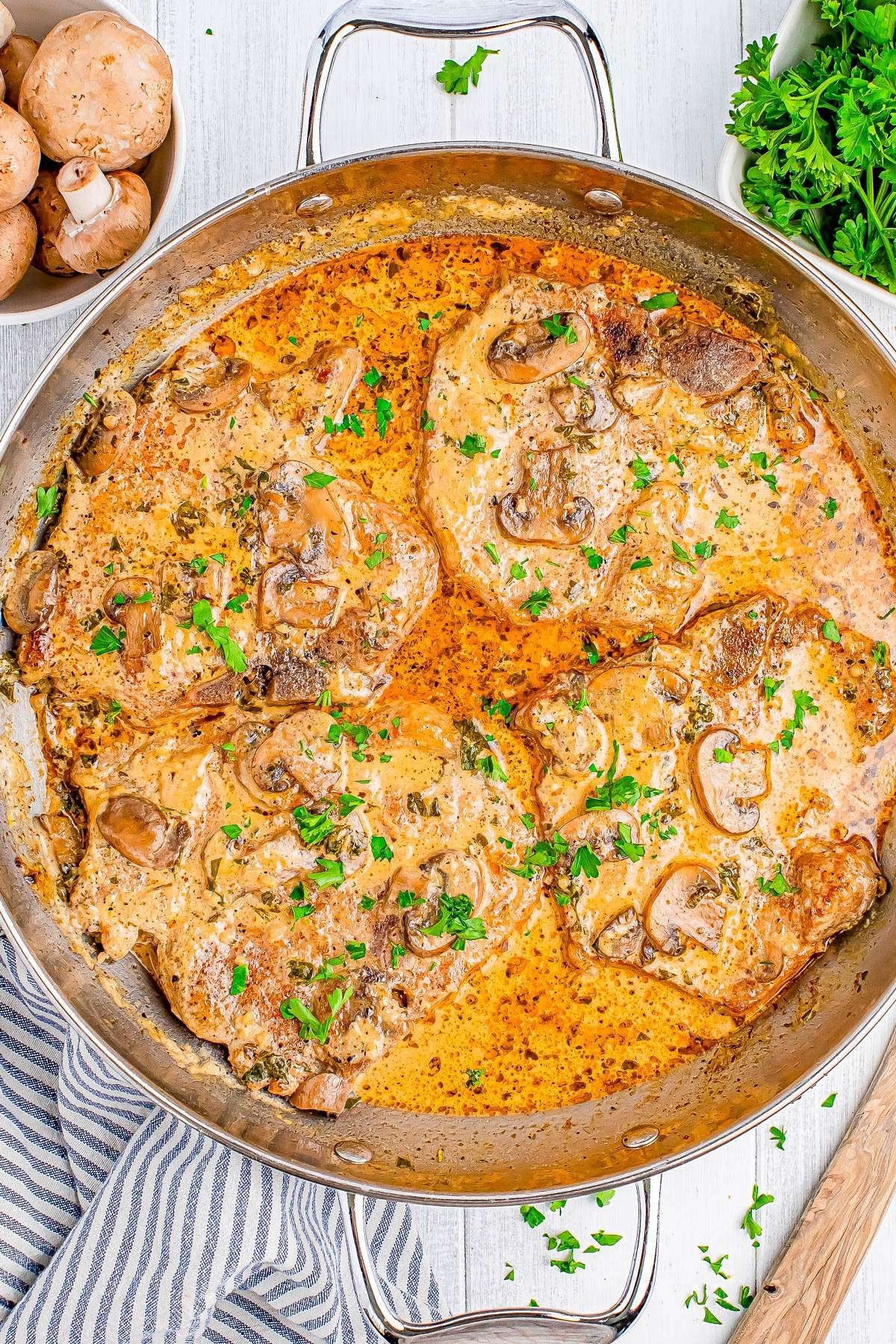 π·πβπ«ππ» An EASY one-skillet recipe for juicy pork chops in a rich mushroom cream sauce which takes this pork chops recipe into comfort food territory! Ready in 30 minutes making this great for busy weeknights but fabulous enough to serve when entertaining. A tried-and-true family FAVORITE!