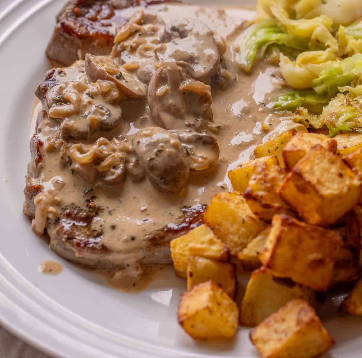 This rich and velvety mushroom sauce pairs perfectly with juicy grilled steak, as well as cooked pasta, baked potatoes, or roasted turkey tenderloin.