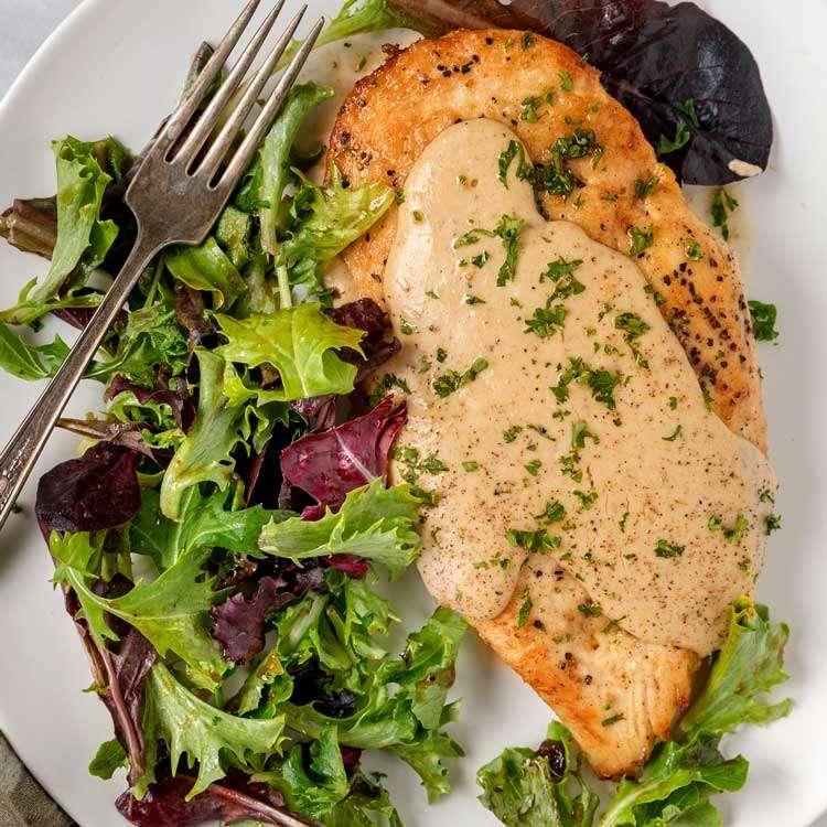 - Spoon sauce over sautéed chicken and serve. Garnish with chopped parsley if desired.