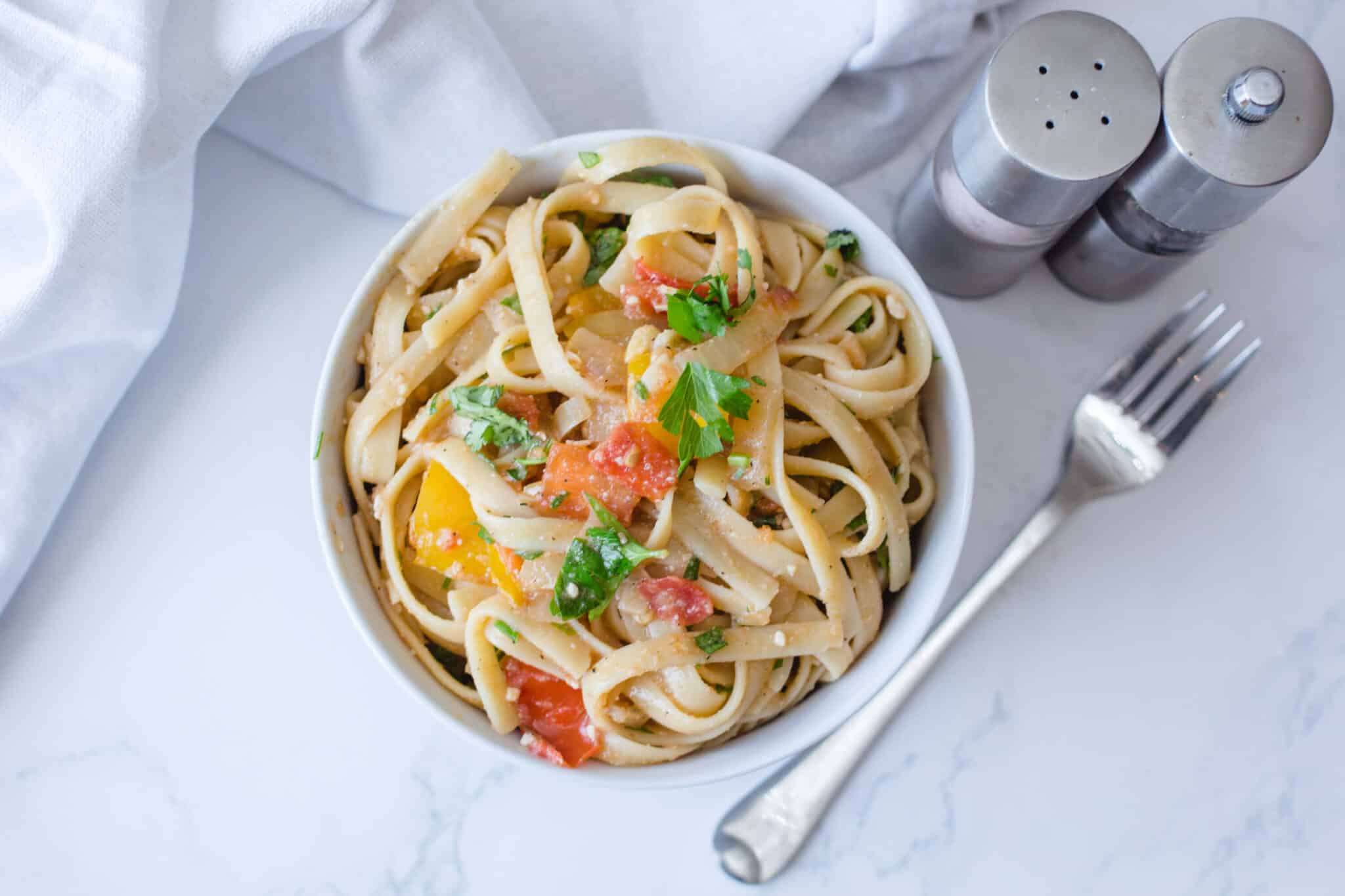 This Creamy Vegetarian Pasta recipe is perfect for weekly dinners. It takes less than 30 minutes to get this tasty meal on your plate, and it's made from only a handful of simple ingredients.