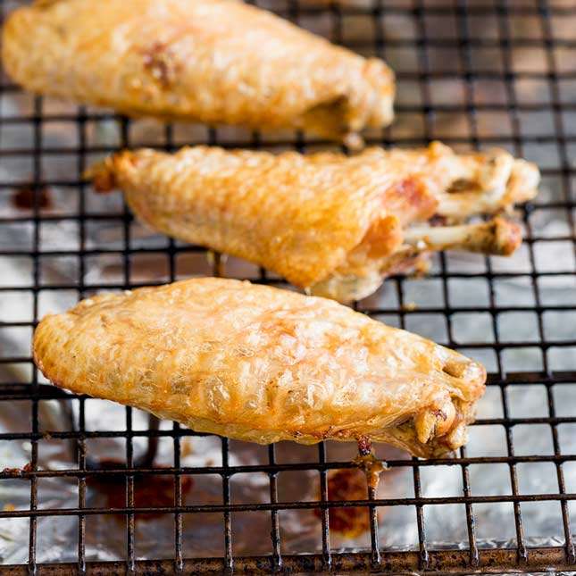 - Lay the wings on a wire rack set over a sheet pan (Line the sheet pan with foil to make clean up easier)