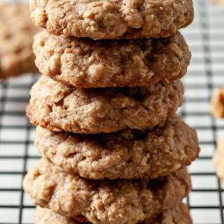 Crisp on the edges, soft and chewy in the middle, Vegan Oatmeal Cookies are packed with sweet raisins and a hint of cinnamon. Simple, satisfying, and made with kitchen staples, these are my favorite cookies to have with afternoon tea or coffee.