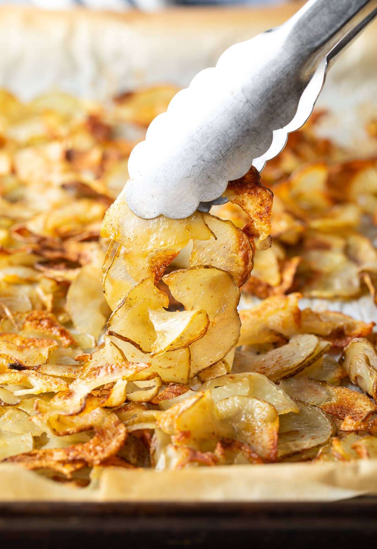 Crispy oven roasted potato ribbons are a fun and delicious side dish that go with any main. You'll love this twist for meat and potatoes meals!