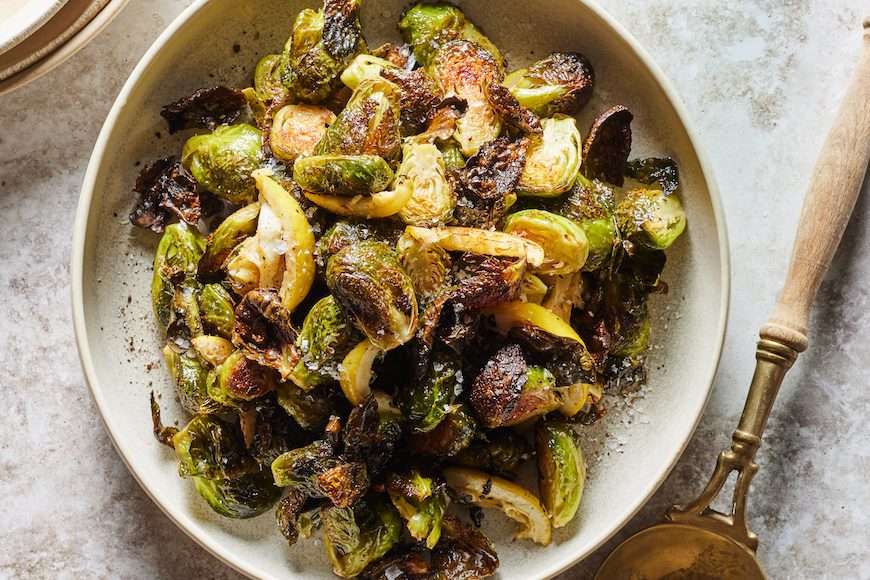- Once the edges are crisp and brown, remove the baking sheet from the oven, squeeze the lemons and sprinkle the juice on the sprouts and discard the peels. Taste and adjust seasonings if needed. Serve immediately.