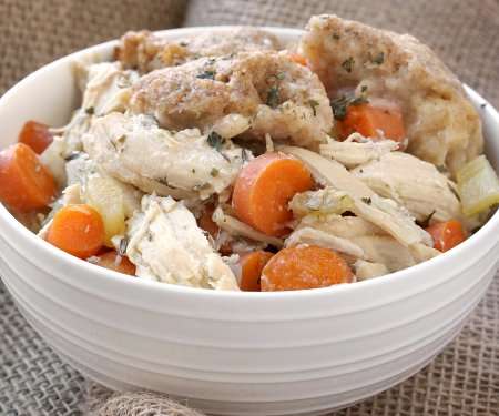 - This recipe can be made on the stove-top. Simply combine all ingredients as they would go into the crock pot, in a large soup pot. Simmer 2-3 hours, until the chicken is fall-apart tender. Then, continue with the recipe at step 5. To steam the dumplings, the stew should be simmering.
