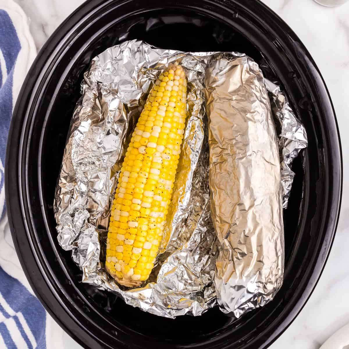 - Once seasoned to your liking, finish wrapping corn in foil and place it in the crock pot. Continue the same steps with the rest of your corn.