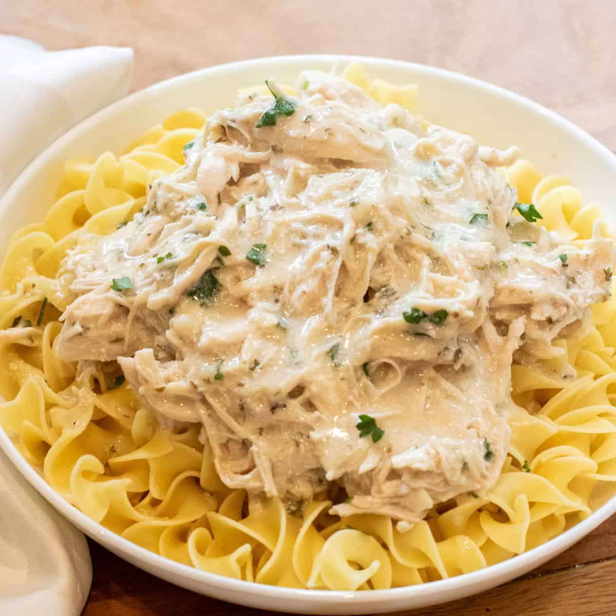 - Shred: Use two forks to shred the chicken in the creamy sauce.