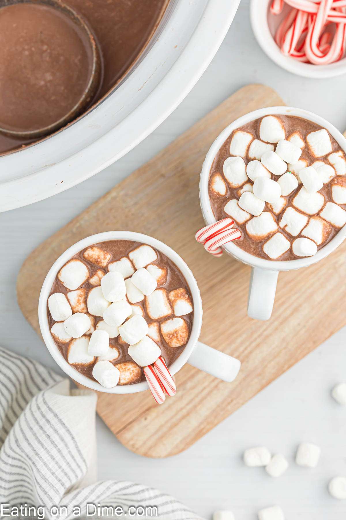 - Serve warm with your favorite toppings (marshmallows, mini candy canes, etc) and enjoy!