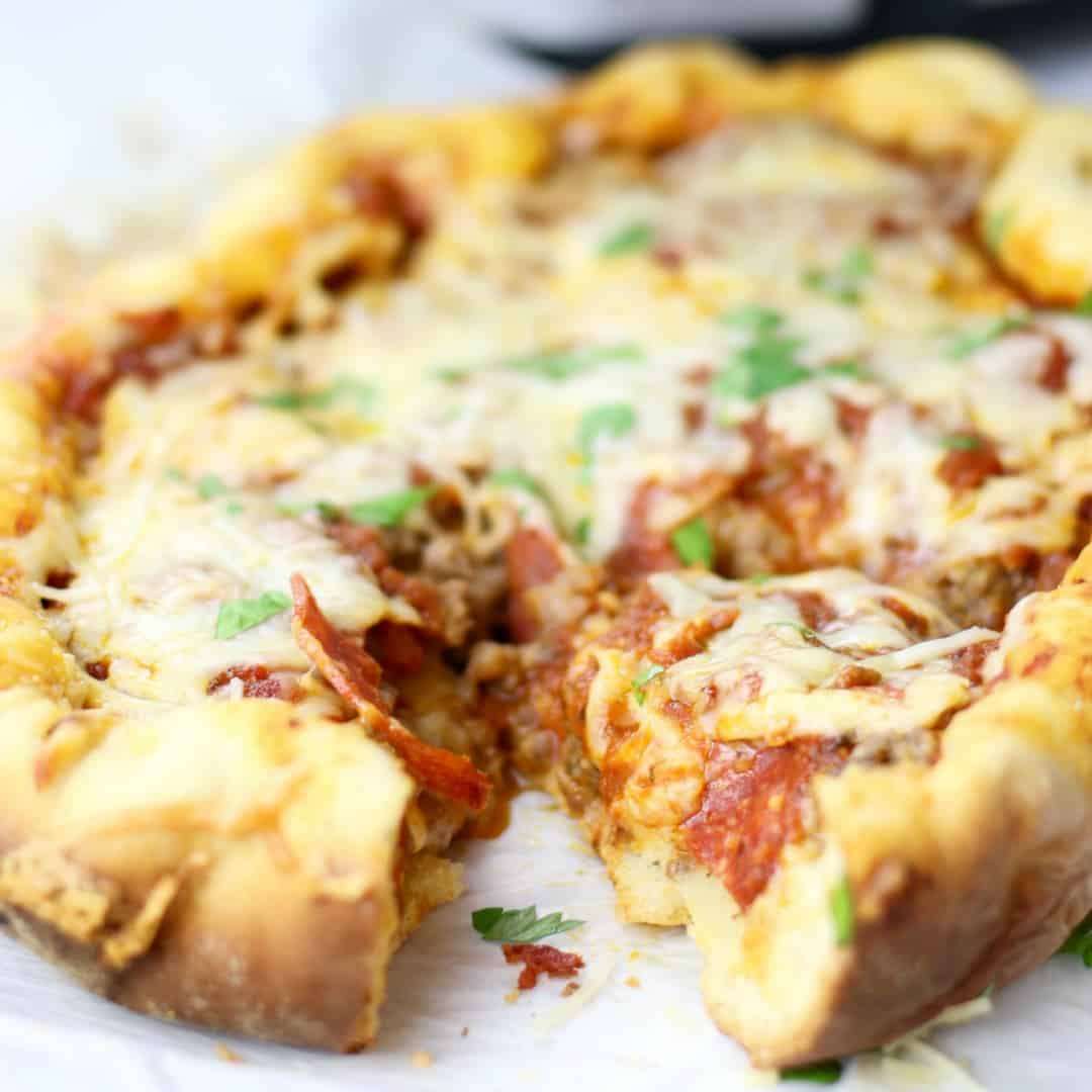 Try a Crock Pot Pizza at your house tonight. This pizza recipe is super easy and the crust comes out amazing! A lifesaver on busy weeknights.