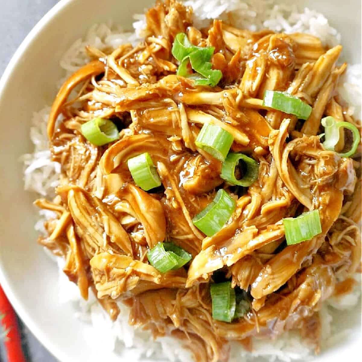 Crock Pot Teriyaki Chicken cooked in a delicious homemade teriyaki sauce, then shredded and served over a bed of rice, a healthy and easy dinner recipe with an Asian touch. The chicken is so tender that it simply melts in your mouth, and the sauce gives such a great flavour.