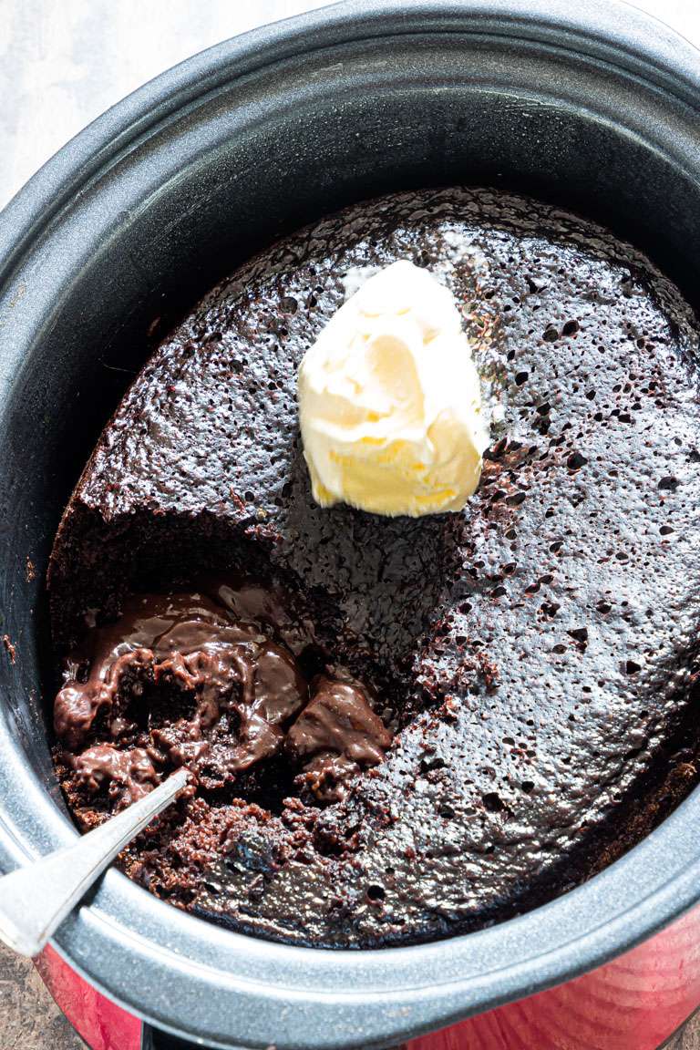 This decadent chocolate cake is easy and fun to make in your slow cooker.