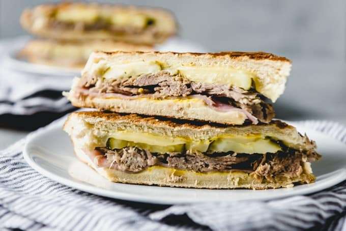 - Slice each Cuban sandwich in half and serve.