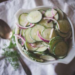 - Peel, grate, and drain cucumber. I drain my grated cucumber by placing it in a wire mesh strainer over a bowl. Use the back of a large spoon to push the water out of the cucumber until you can no longer squeeze any more liquid out.
